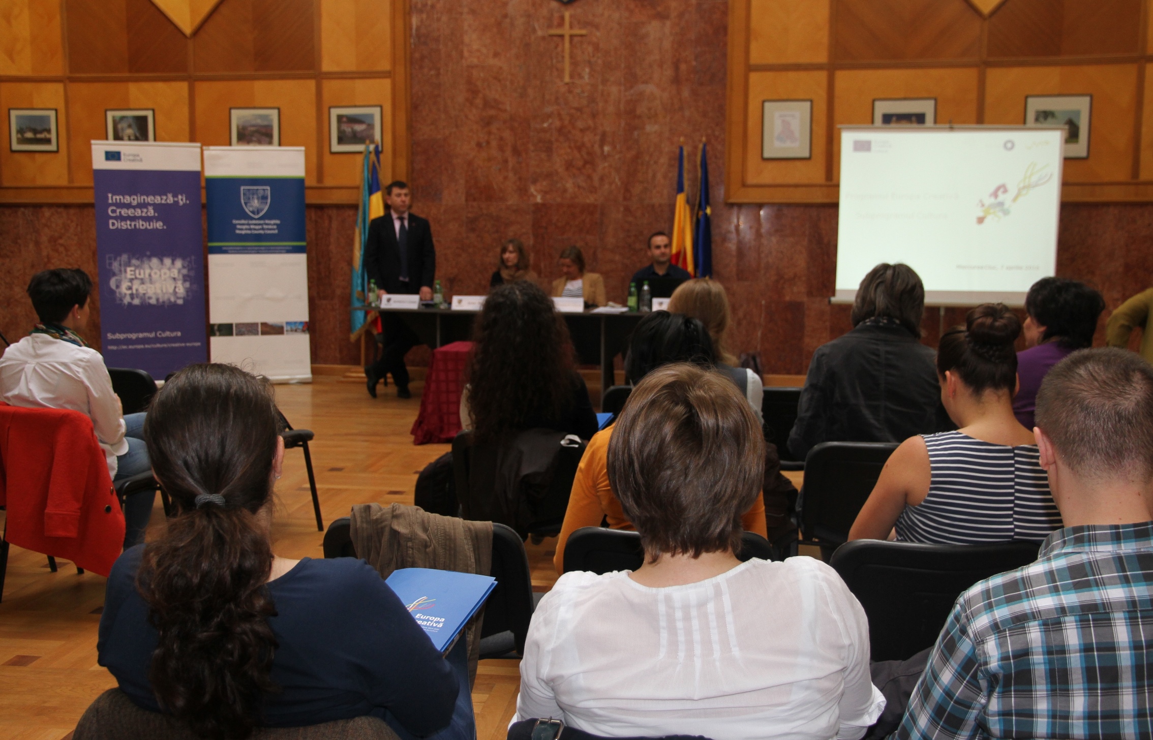A kulturális projektekre a Kreatív Európa program Kultúra alprogramja keretében lehívható európai uniós támogatásokról tartottak tájékoztatót a csíkszeredai megyeházán április 7-én. A szakterületen tevékenykedő szervezetek, intézmények képviselőinek és az érdeklődőknek szervezett találkozón jelen volt Borboly Csaba, Hargita Megye Tanácsának elnöke, a Transylvania Trust Alapítvány részéről Hegedüs Csilla és Berki Tímea, valamint Sorin Enuș, a Kreatív Európa Románia irodájának vezetője.